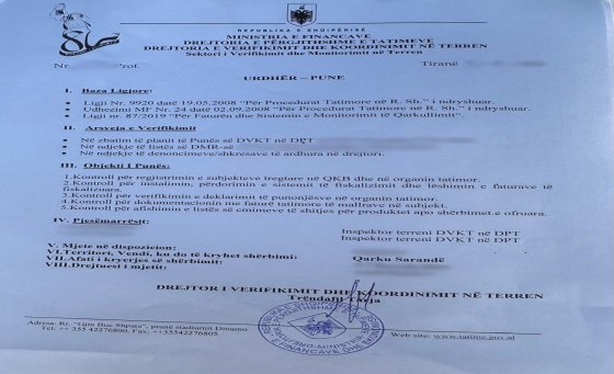 - Urdhri i punës i firmosur nga drejtuesi i Drejtorisë përkatëse
