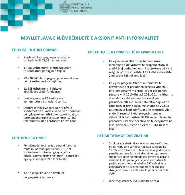 Mbyllet java e njëmbëdhjetë e aksionit Anti Informalitet