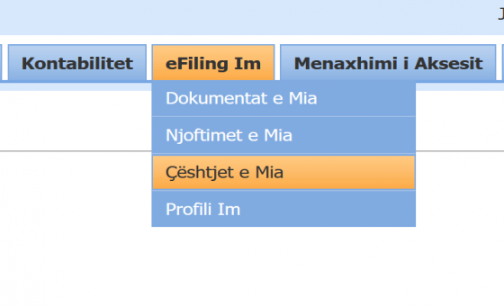2. Në menunë e-filing Im, përzgjedh Çështjet e Mia, për të bërë të mundur krijimin e një çështjeje të re