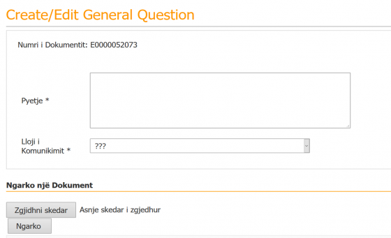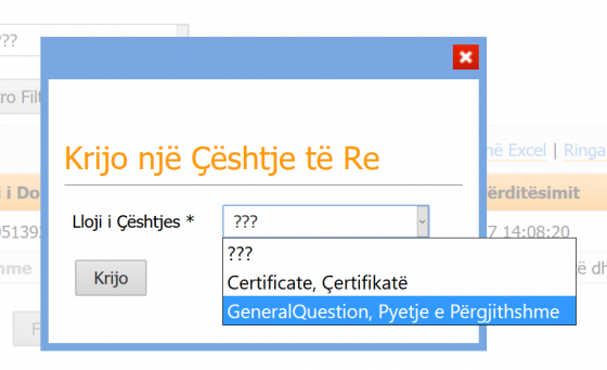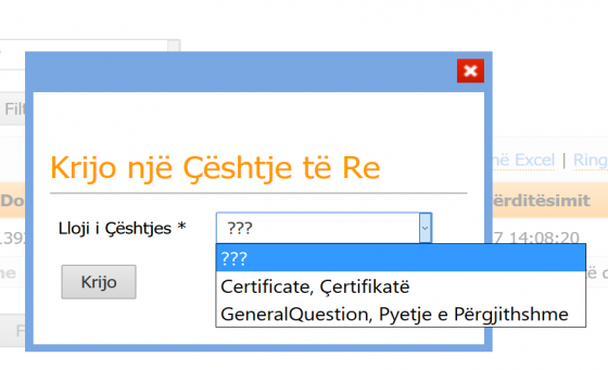 4. Pasi klikon Krijo Çështje më pas përzgjedh llojin e çështjes – GeneralQuestion,Pyetje e Përgjithshme